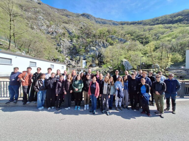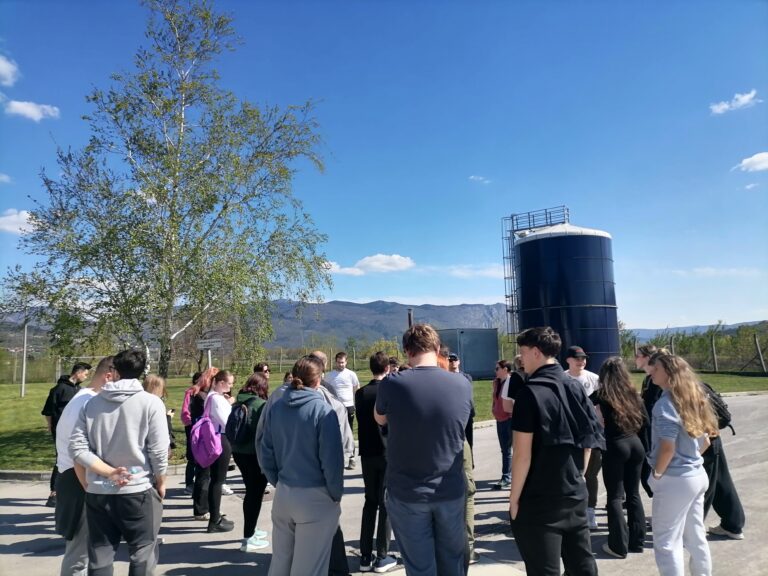 Popoldan smo si na Centralni čistilni napravi v Ajdovščini ogledali proces čiščenja odpadnih voda, ki je zaradi velikega deleža industrijskih odpadnih vod zahtevno. Poleg čiščenja vode smo spoznali tudi postopek obdelave blata, ki je eden najnaprednejših v Sloveniji. Študenti so z ogledom vzorcev vode na dotoku in iztoku spoznali pomen ustreznega čiščenja za ohranjanje kakovosti Hublja in Vipave.