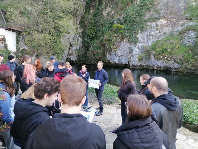 Srečali smo se pri izvirih Vipave, kjer smo predstavili geološke, geomorfološke in hidrološke značilnosti povirja ter kraškega vodonosnika Visokih kraških planot. Nadaljevali smo z delavnico, kjer so študenti s pomočjo podatkov ARSO spoznali značilnosti ter spremembe pretokov in pretočnih režimov Vipave na vodomernih postajah v Vipavi, Dolenjah in Mirnu ter Hublja v Ajdovščini.