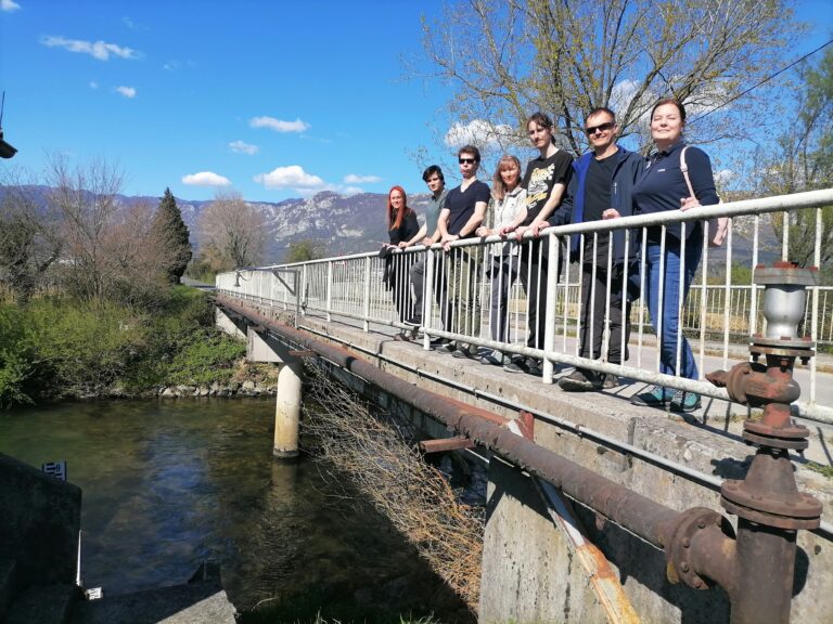 Pot nas je vodila v Ajdovščino, kjer smo obiskali vodarno Hubelj in se seznanili s pripravo in distribucijo pitne vode do končnih uporabnikov. Na vodomerni postaji Hubelj smo spoznali metode merjenja vodostaja, preračuna v pretok, hidromorfološke spremembe vodotokov ter se seznanili s poplavami, hidro in agromelioracijami v Vipavski dolini.