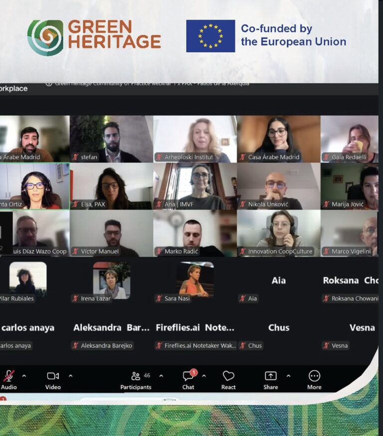 Organised by Casa Árabe within the GreenHeritage project, together with our guests from the PAX association – Patios de la Axerquía, the session brought together international participants and featured inspiring presentations by architects Gaia Redaelli and Carlos Anaya. Under the theme “Urban Heritage and Nature-Based Solutions: the PAX Strategy in Córdoba,” the webinar explored how historic urban environments can actively contribute to environmental sustainability. The speakers presented innovative approaches that connect cultural heritage with nature-based solutions, offering valuable insights for sustainable urban development. The event also introduced the Green Heritage Community of Practice as an open international network, aimed at professionals interested in the intersection of heritage and sustainability. The UNESCO Chair for Interpretation and Education for Enhancing Integrated Heritage Approaches at the University of Primorska was represented by the chairholder, Prof. Irena Lazar.