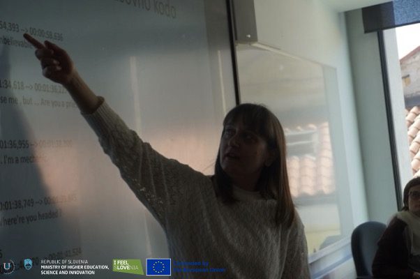 The main part of the workshop gave students the opportunity to practise their skills on computers using Subtitle Edit. Working with Slovenian instructions and English audiovisual content, they faced real-life translation challenges.