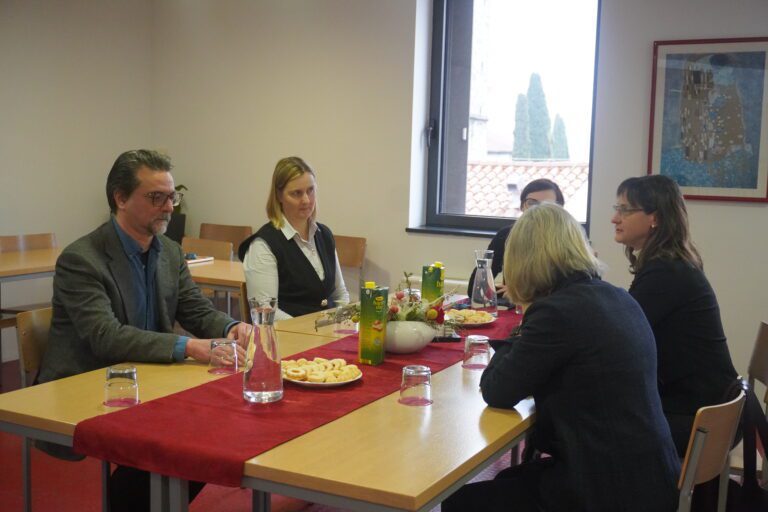 Il preside della Facoltà, prof. Aleksander Panjek, ha ringraziato la Console per la proficua collaborazione finora instaurata e ha posto l’attenzione su alcune questioni ancora aperte, in particolare sulla complessa procedura di riconoscimento dei titoli di studio. Ha inoltre presentato la rete universitaria internazionale T4EU, alla quale aderiscono sia l’Università del Litorale sia l’Università di Trieste, illustrando le diverse forme di possibile collaborazione. Successivamente, le docenti del Dipartimento hanno delineato il profilo della popolazione studentesca e le sfide legate all’insegnamento e all’apprendimento della lingua e della cultura italiane in un contesto plurilingue e multiculturale.