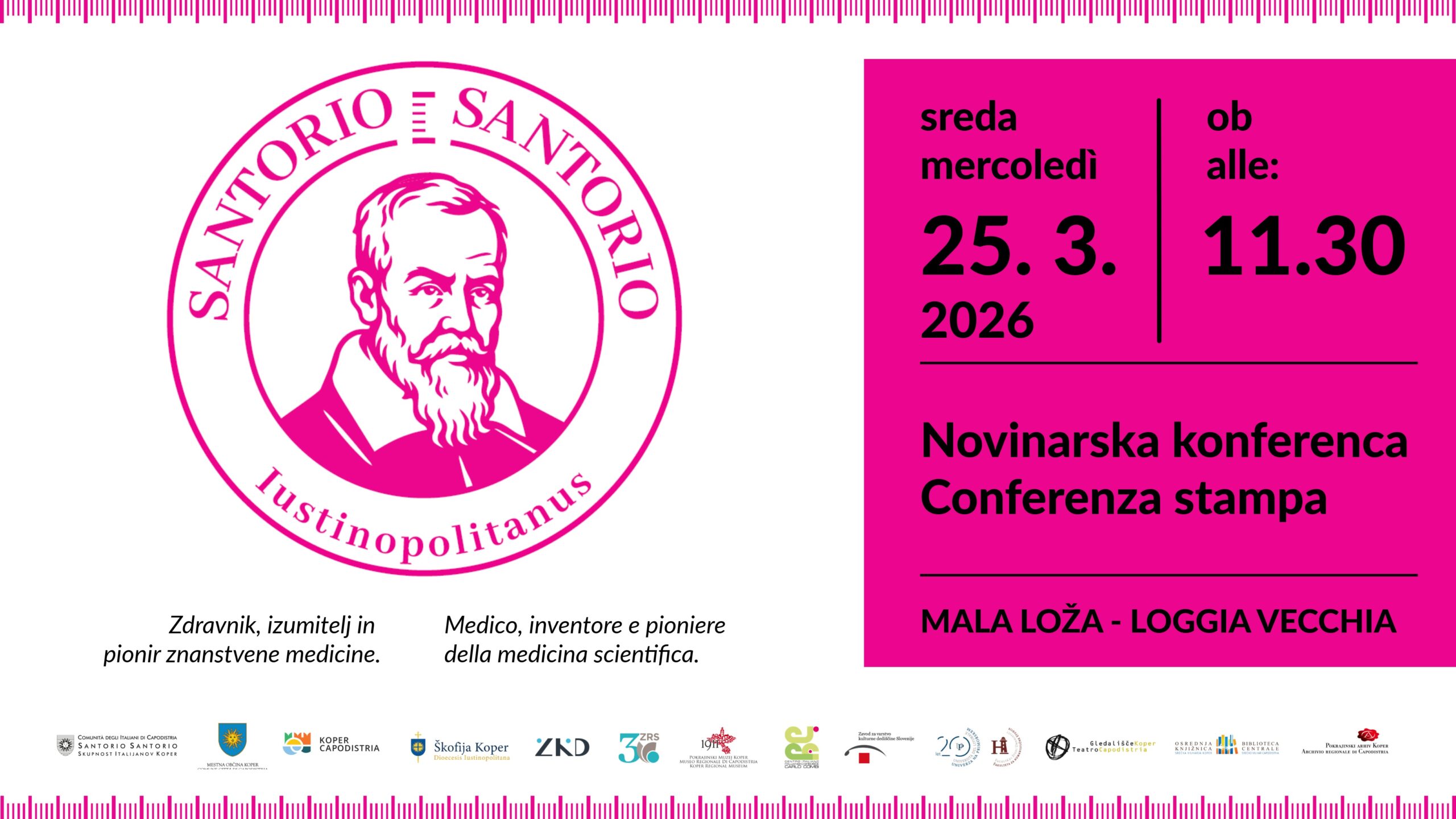 ObeležitevSantorijevega leta se bo uradno začela z novinarsko konferenco v sredo, 25. marca 2026, ob 11.30 v koprski Mali loži.
