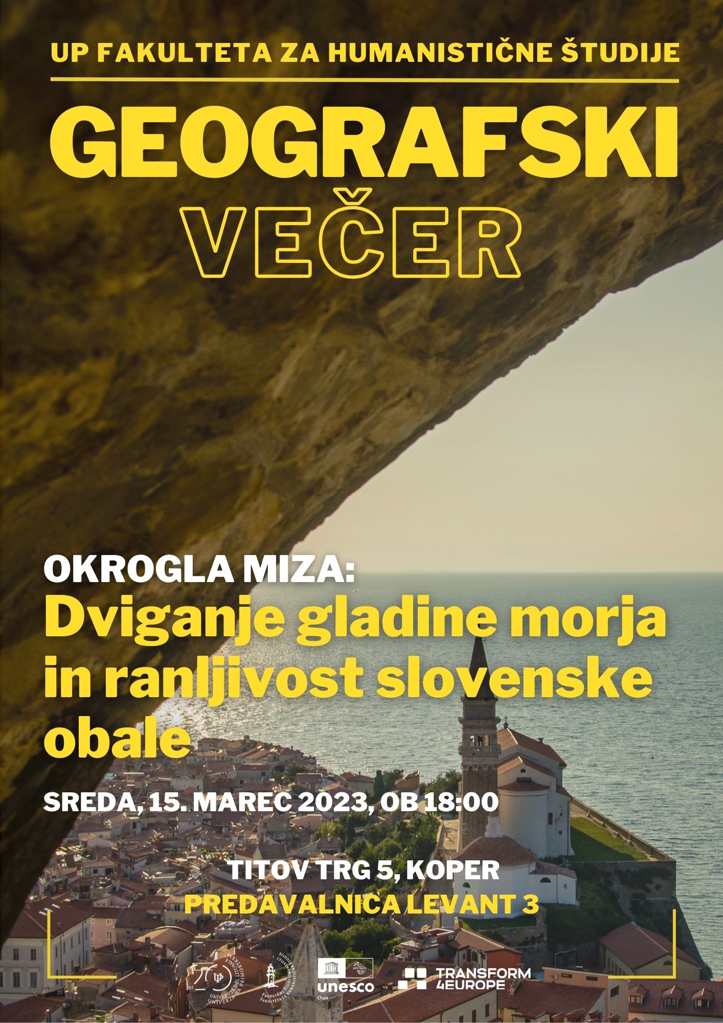 15. 3. 2023 – Okrogla miza: Dviganje gladine morja in ranljivost slovenske obale (dr. Valentina Brečko Grubar, Maja Jeromel, Valentina Lavrenčič, dr. Mojca Poklar, mag. Valter Suban) >> VEČ O DOGODKU