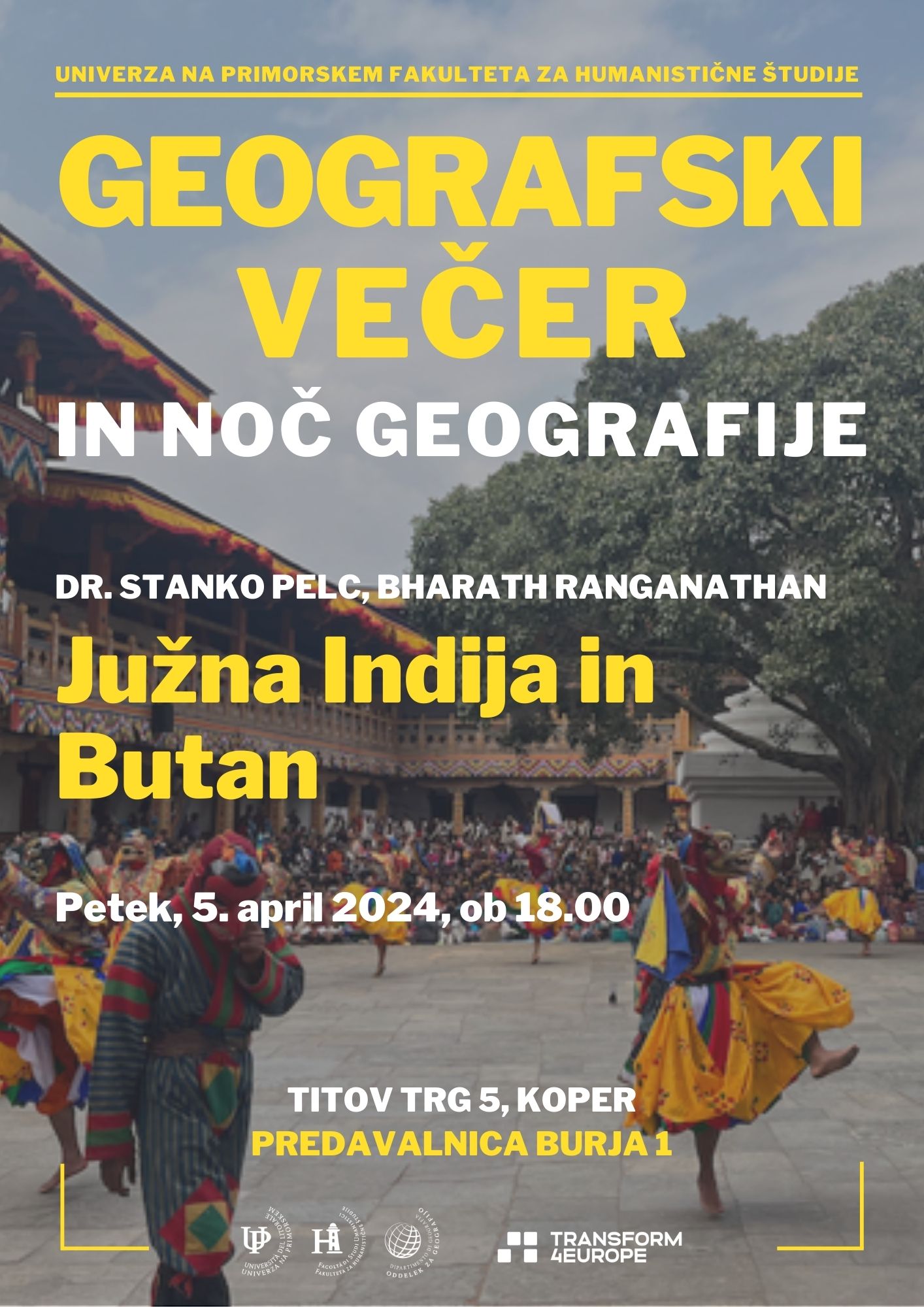5. 4. 2024 – Južna Indija in Butan, potopisno predavanje izr. prof. dr. Stanka Pelca in glasbenika Bharatha Ranganathana. >> VEČ O DOGODKU