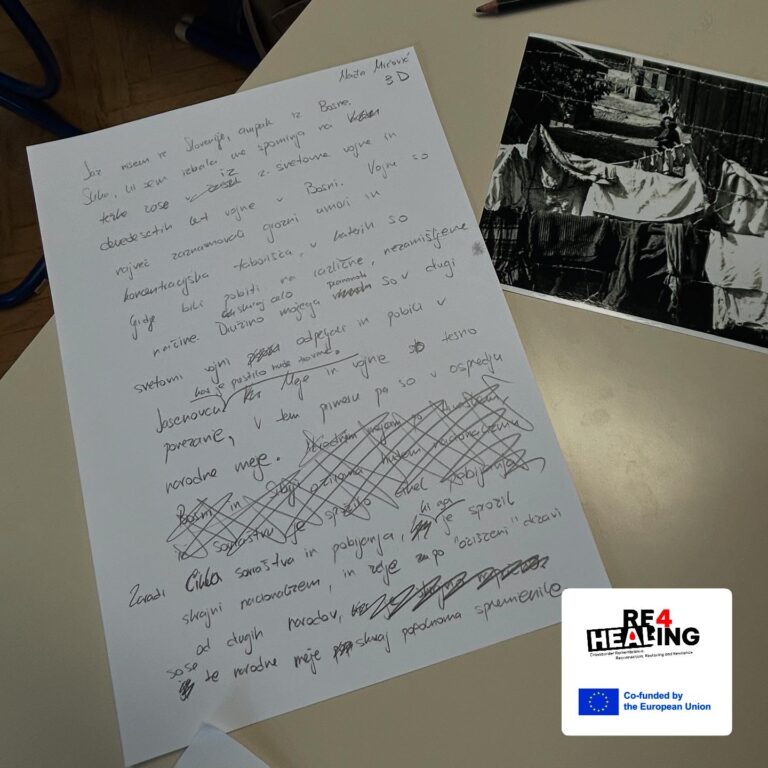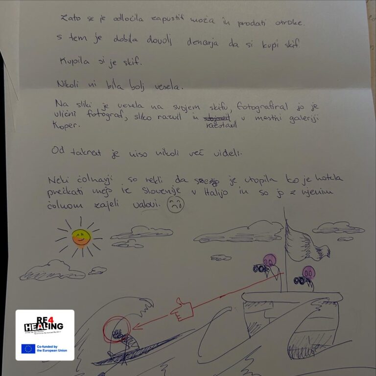 The workshops were led by Manca Švara, Jungian psychoanalyst and director of Zavod Epiona. Through art-based therapeutic methods, participants explored their personal and family histories, creating narratives through visual, written, and oral expression. Each workshop included a group discussion, which often evolved into deeper reflections.