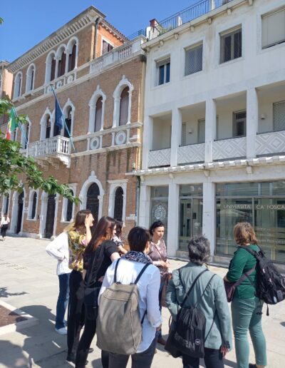 Študentje in profesorji so se v ponedeljek, 22. maja, odpravili v Benetke in si tam v spremstvu prof. Paole Begotti ogledali nekatere manj znane kotičke mesta, vezane predvsem na razvoj visokega šolstva in Univerze Ca’ Foscari. Po ogledu so sledili tudi predavanju prof. Begotti o akademski italijanščini.