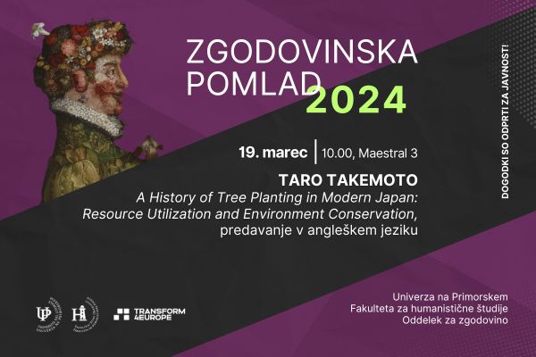 V predavanju bomo najprej osvetlili teme, s katerimi se je doslej ukvarjala okoljska zgodovina na Japonskem v povezavi z gozdovi in gozdarstvom. Nadaljevali bomo s predstavitvijo konceptov, ki zadevajo upravljanje z gozdovi, pri čemere bomo posebej izpostavili razliko med zgodovino gozdarstva in zgodovino gozdov. Nazadnje se bomo dotaknili sajenja in ozelenjevanja na Japonskem od obdobja Meiji (1868 – 1912) naprej. Predavanje bo v angleškem jeziku.