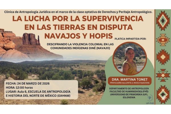 Zoom predavanje (24.3.2026) za študente na univerzi Escuela de Antropología e Historia del Norte de México (EAHNM) (Chihuahua, Mehika) v sklopu antropološkega programa “Peritaje y Derechos”